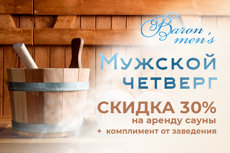 Каждый четверг −30% на аренду сауны + комплимент от заведения (чай / снеки)
